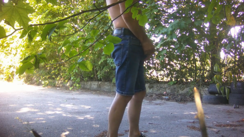 Men leaking by the brick wall